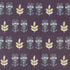 Blaue und grüne Blätter & Blumen auf violettem Untergrund.