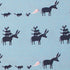 Die berühmten Bremer Stadtmusikanten auf blauem Popeline Stoff aus reiner Bio-Baumwolle. Die Esel haben eine Höhe von etwa 3 cm.